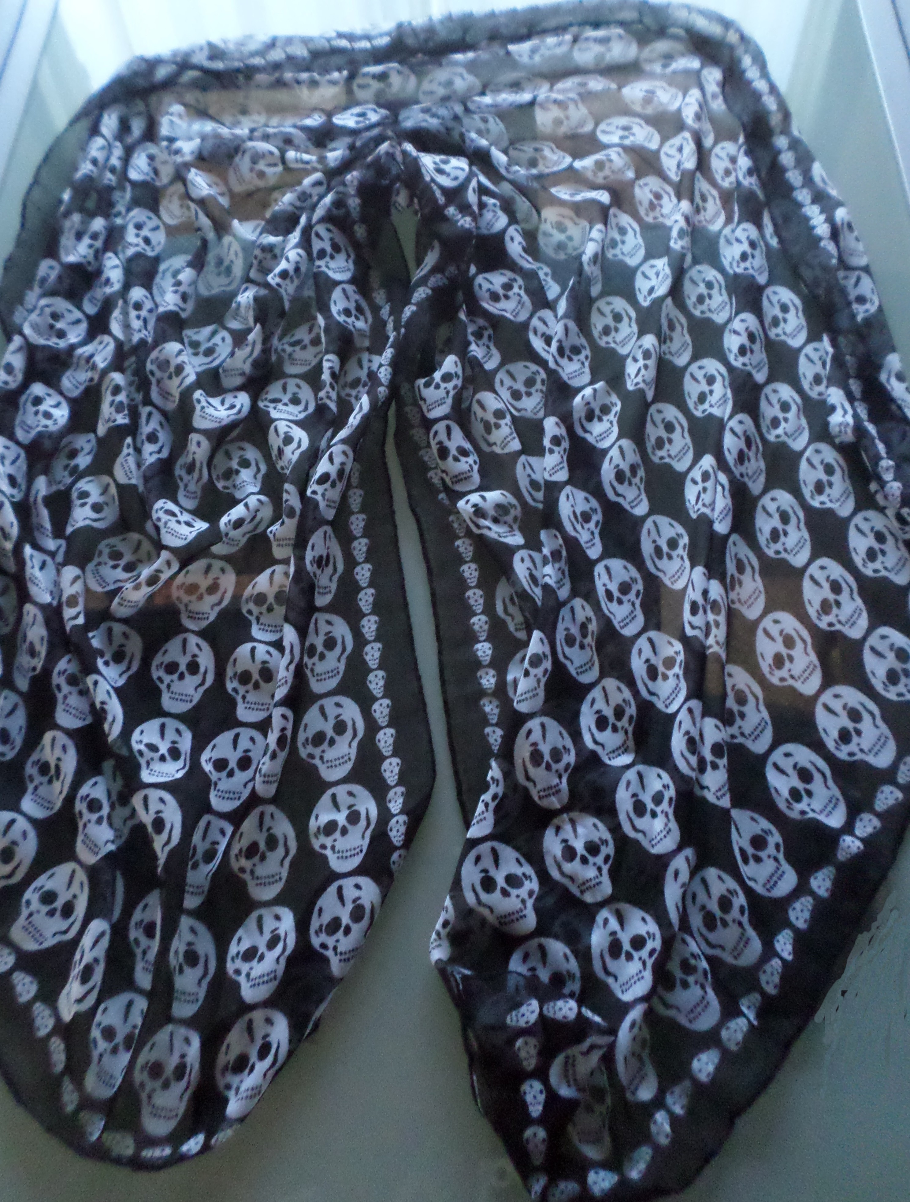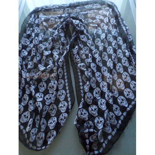 Grand Foulard Echarpe Chèche Etole - Motif Tête de Mort N/B