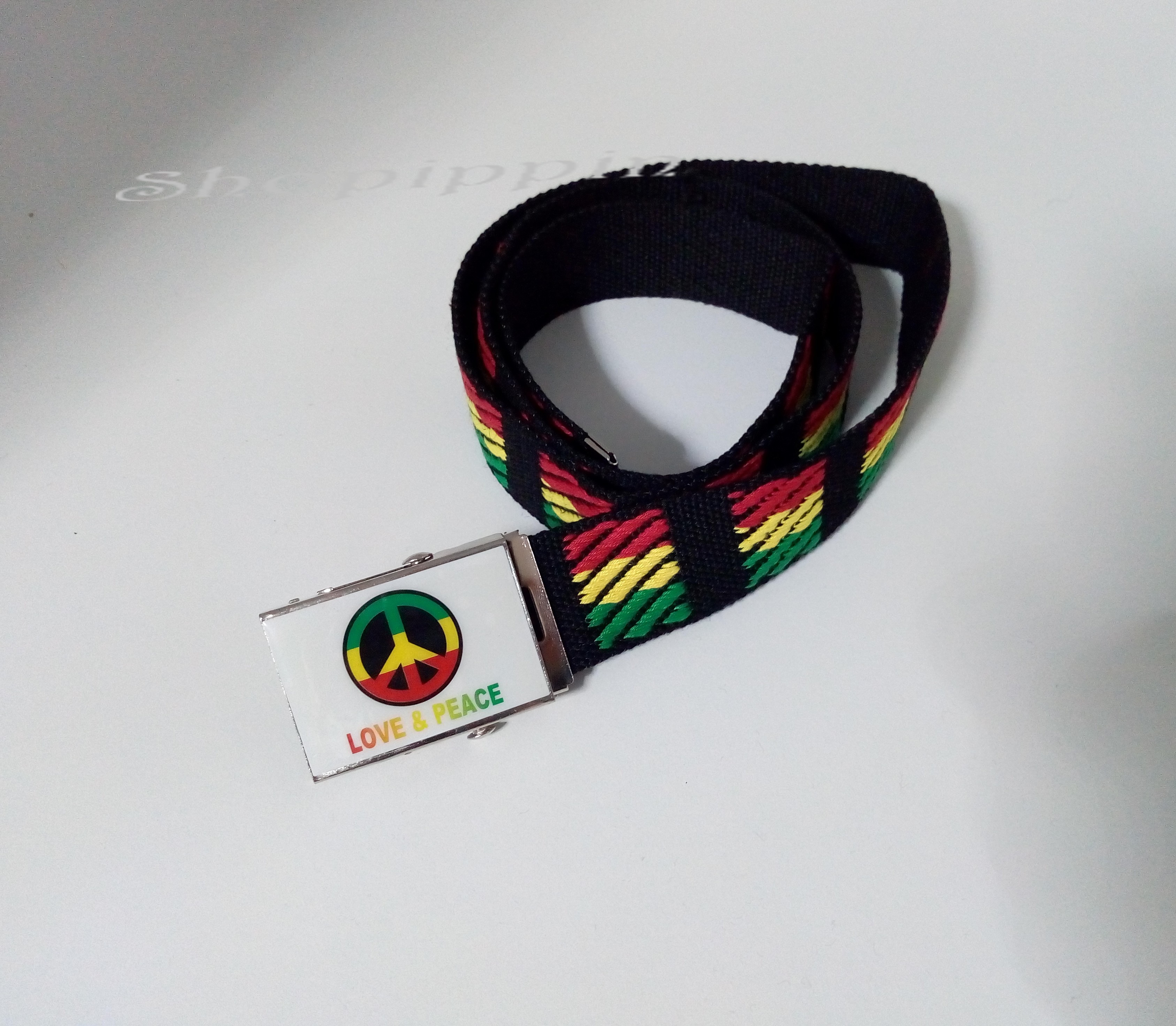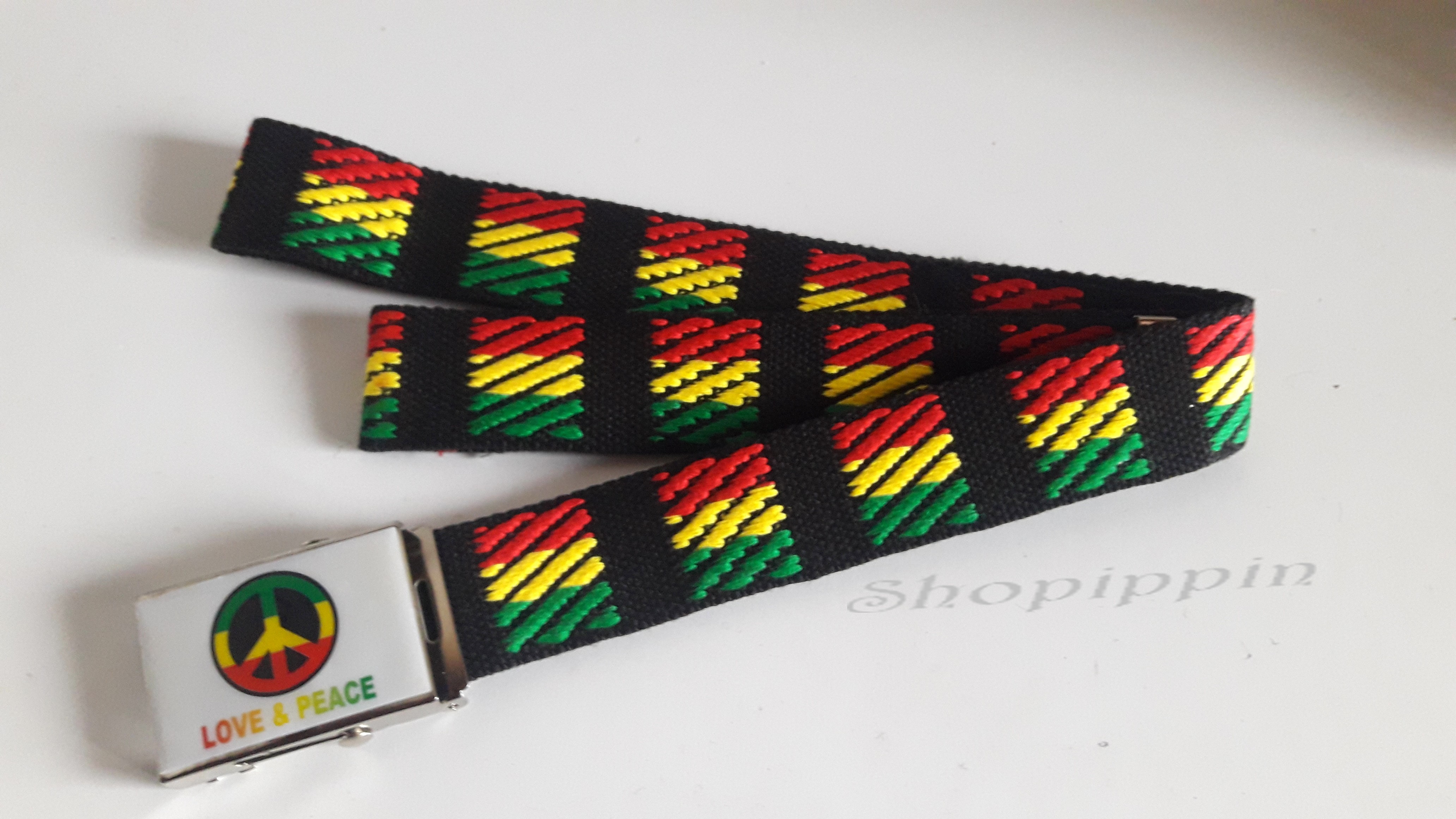Très belle ceinture Rasta, boucle de ceinture en métal avec Love & Peace
