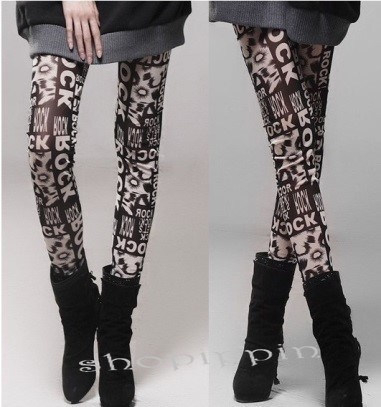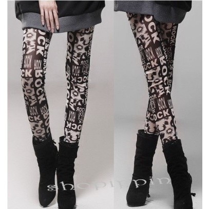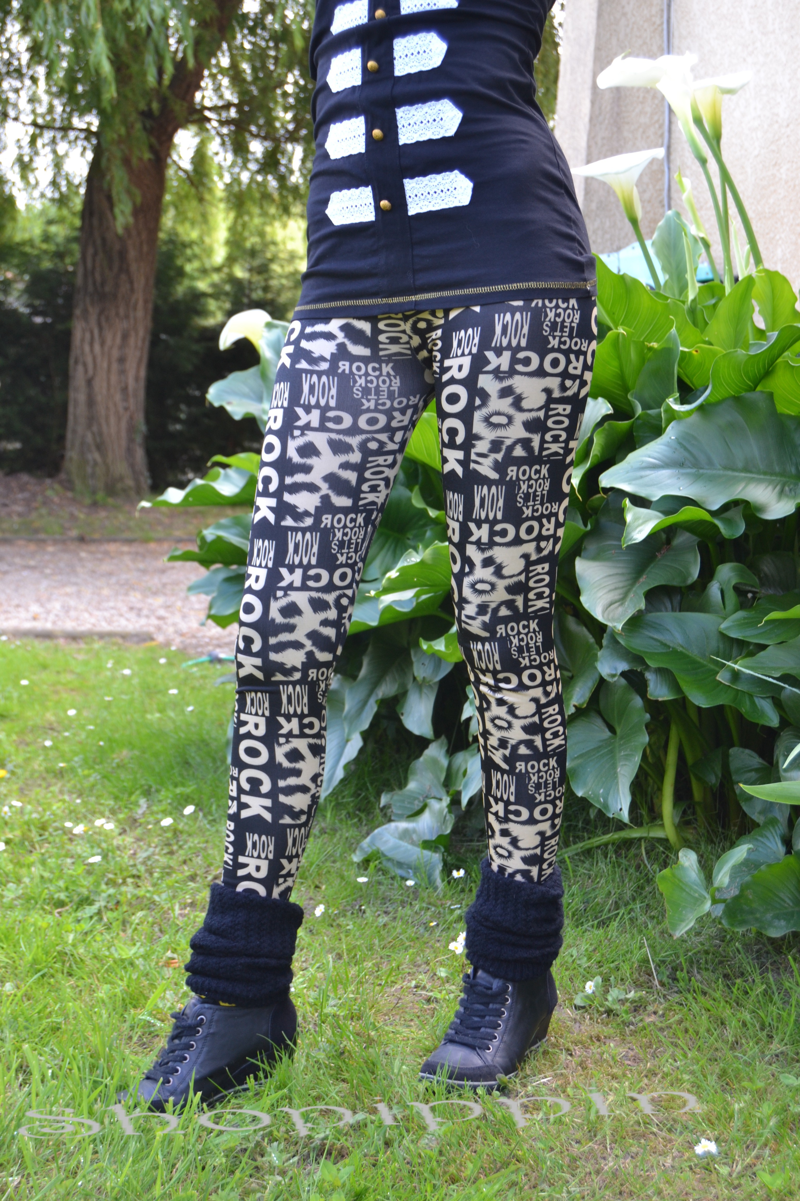Legging Noir - Lettres de fond Imprimé Rock