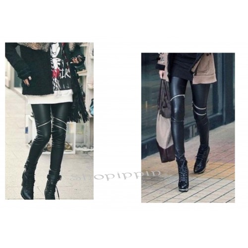 Legging Noir Zip Métal Argenté